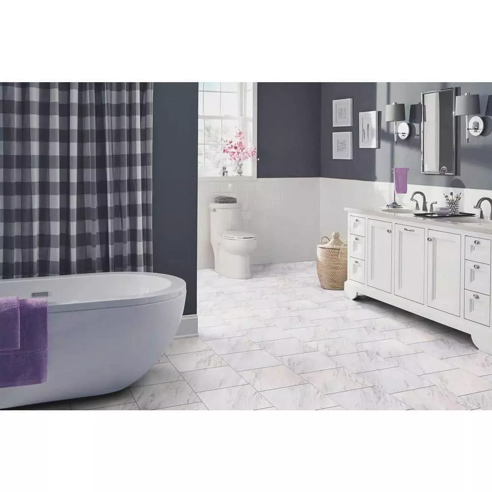 The look of stone flooring is affordable and practical with the TrafficMASTER Premium 12 in. x 12 in. Vinyl Tile. With the appearance of high end slate, travertine and marble, it is easy to clean maintain with a no-wax vinyl wear layer. It installs easily with a peel-and-stick method and can be placed over most subfloors.