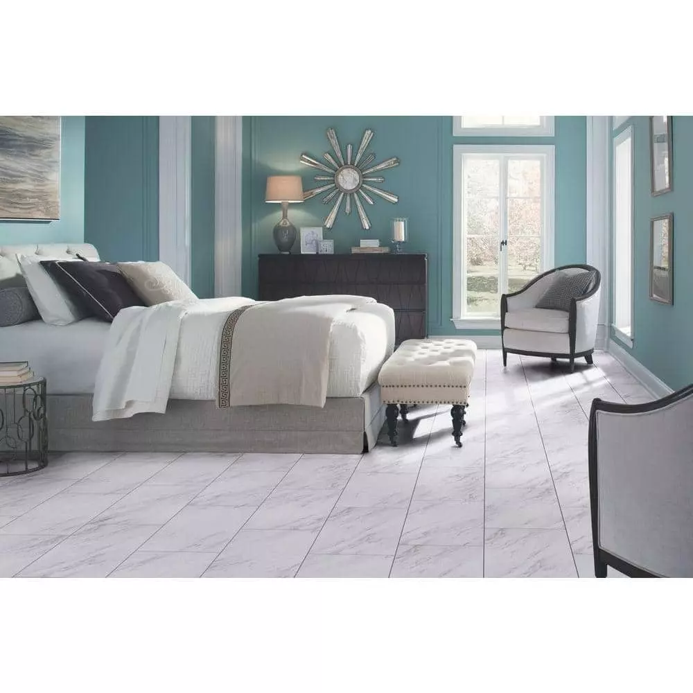 Trafficmaster By Carrara Tile Case) Marble Vinyl 12 In. (20 Sq. Ft. X 24 In. / Peel And Stick