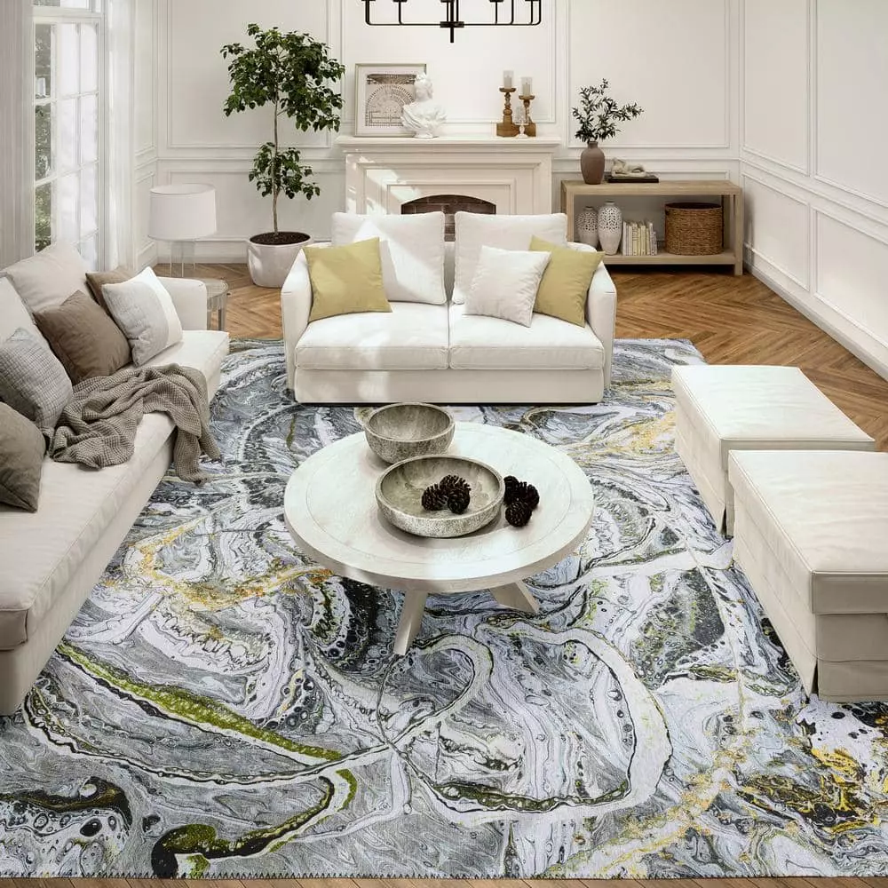 This collection is an ultra-soft flat, Chenille area rug using Prismatic color processing. Crafted with 100% polyester pile with premium non-skid backing. The entire family will love these transitional abstract area rugs. Shake out or use straight suction with vacuum, do not use a beater bar. Machine washable in cold water and air dry, some sizes may be too large for a residential washing machine and is family and pet friendly.