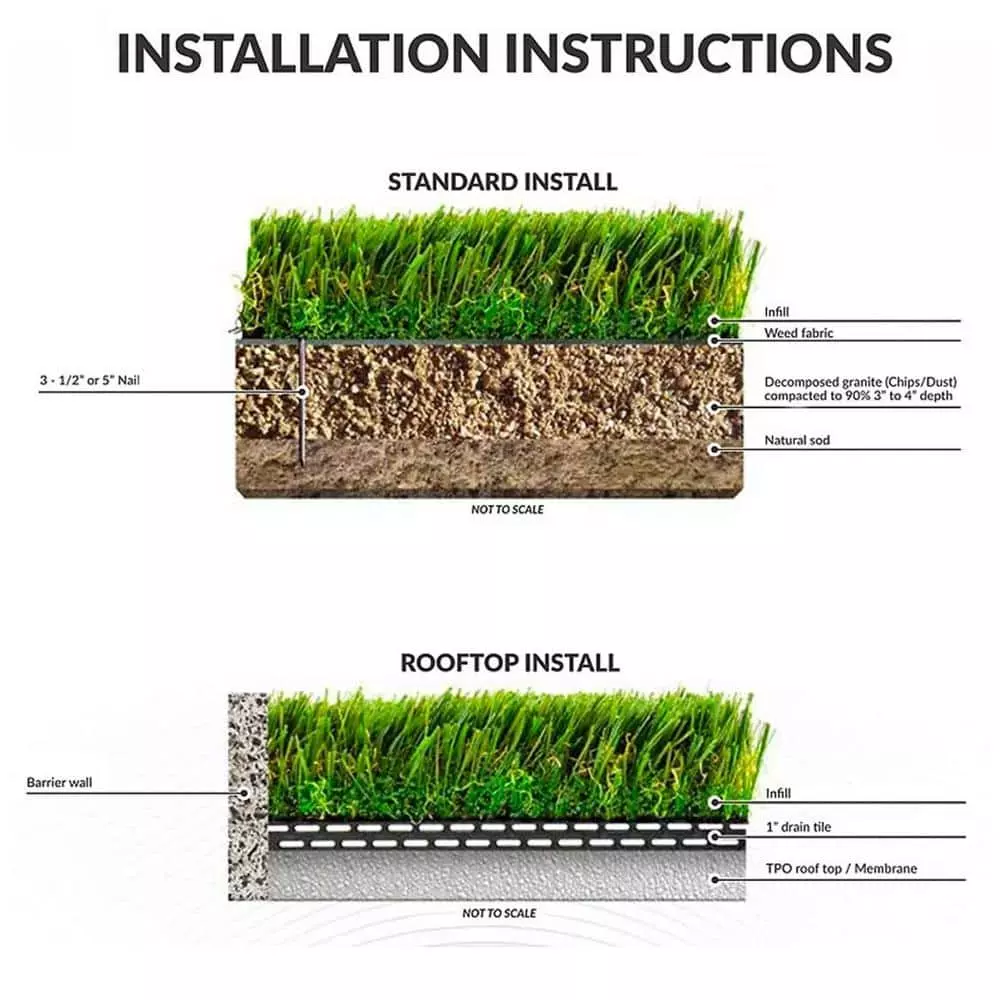 TrafficMaster 7.5 ft. x 13 ft. Green Artificial Turf is a multi-purpose artificial Turf that is great for dogs and pets. The quality three-dimensional blades provide a realistic look along with the superior durability. No Mowing, No Watering, No Spraying just years of enjoyment with family, friends, and pets/dogs. This turf is safe for pets with a durable backing against digging and ideal in moderate traffic areas. It provides enjoyment year-round and is designed to be cool to the touch in direct sunlight. It is an excellent choice in both hot and dry climate areas where you can conserve water, and in climates that are cold and/or wet for a mud free play area. It is recommended to add 1-2 lbs. of infill per sq. ft. for a natural look and blade support.