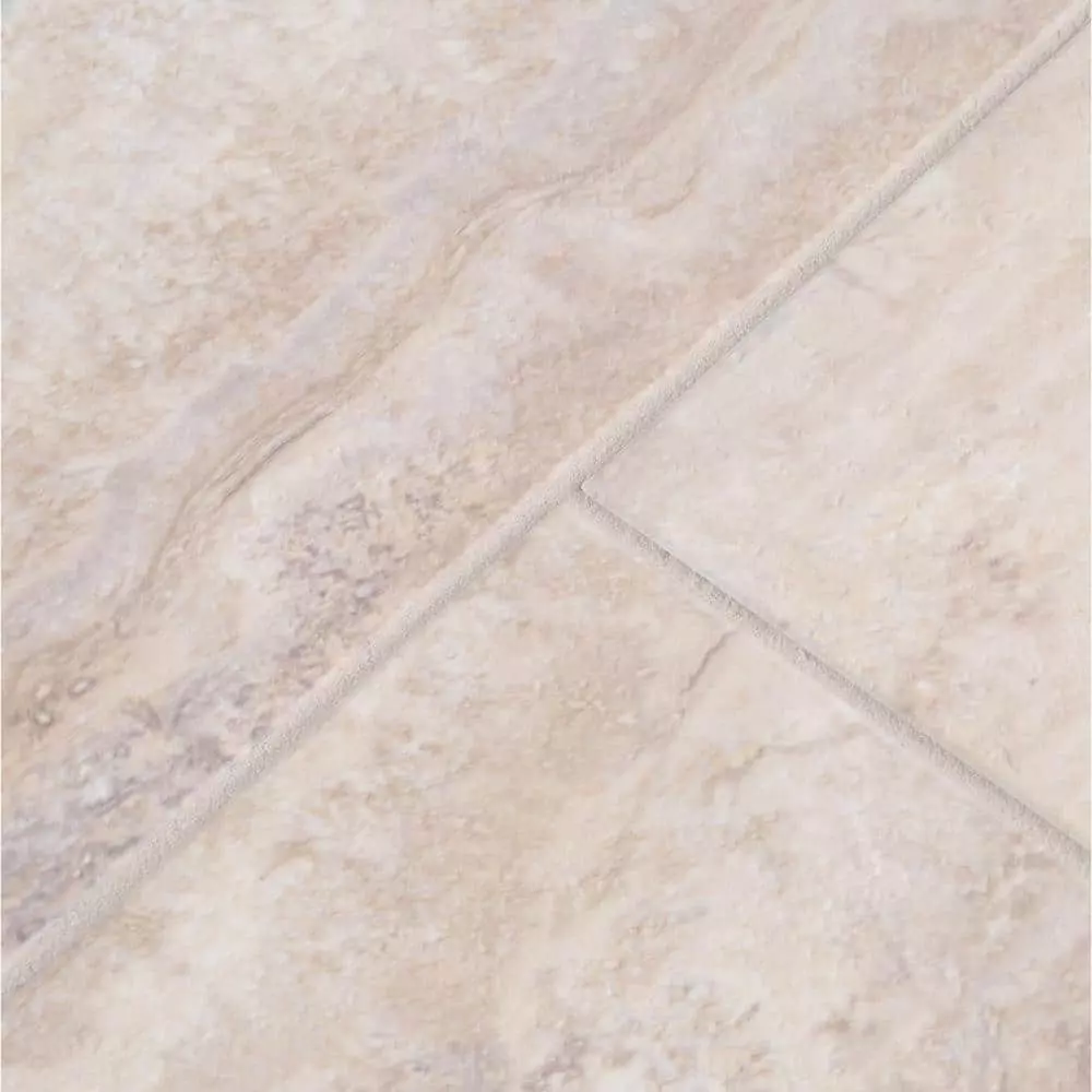 Get the look of natural stone at a fraction of the cost with this 12 in. x 24 in. Rolled Edge Resilient Vinyl Tile Flooring from TrafficMASTER. Installation is easy with a peel and stick method, with or without grout. It is highly durable, moisture resistant and great for kitchens, bathrooms and any other room in the home.