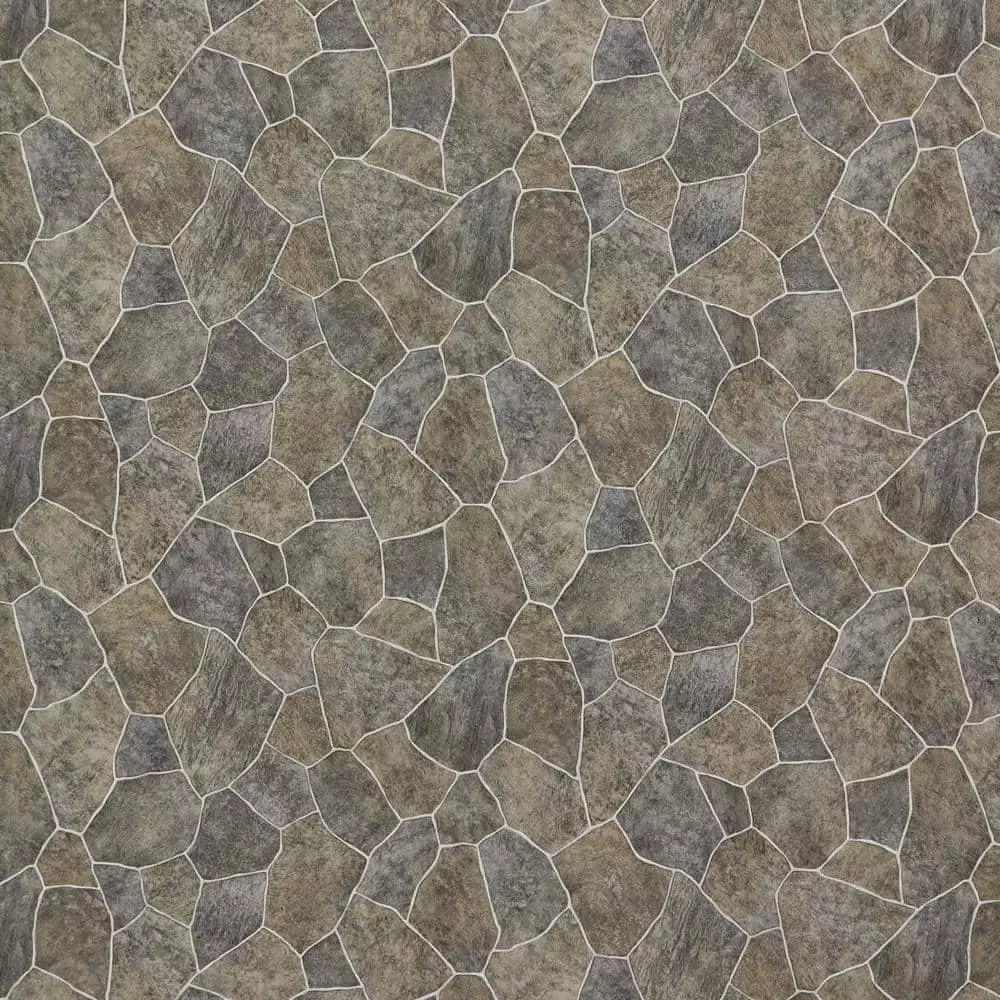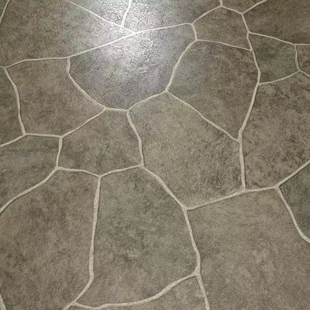 Grey vinyl sheet flooring in a broken slate mosaic look