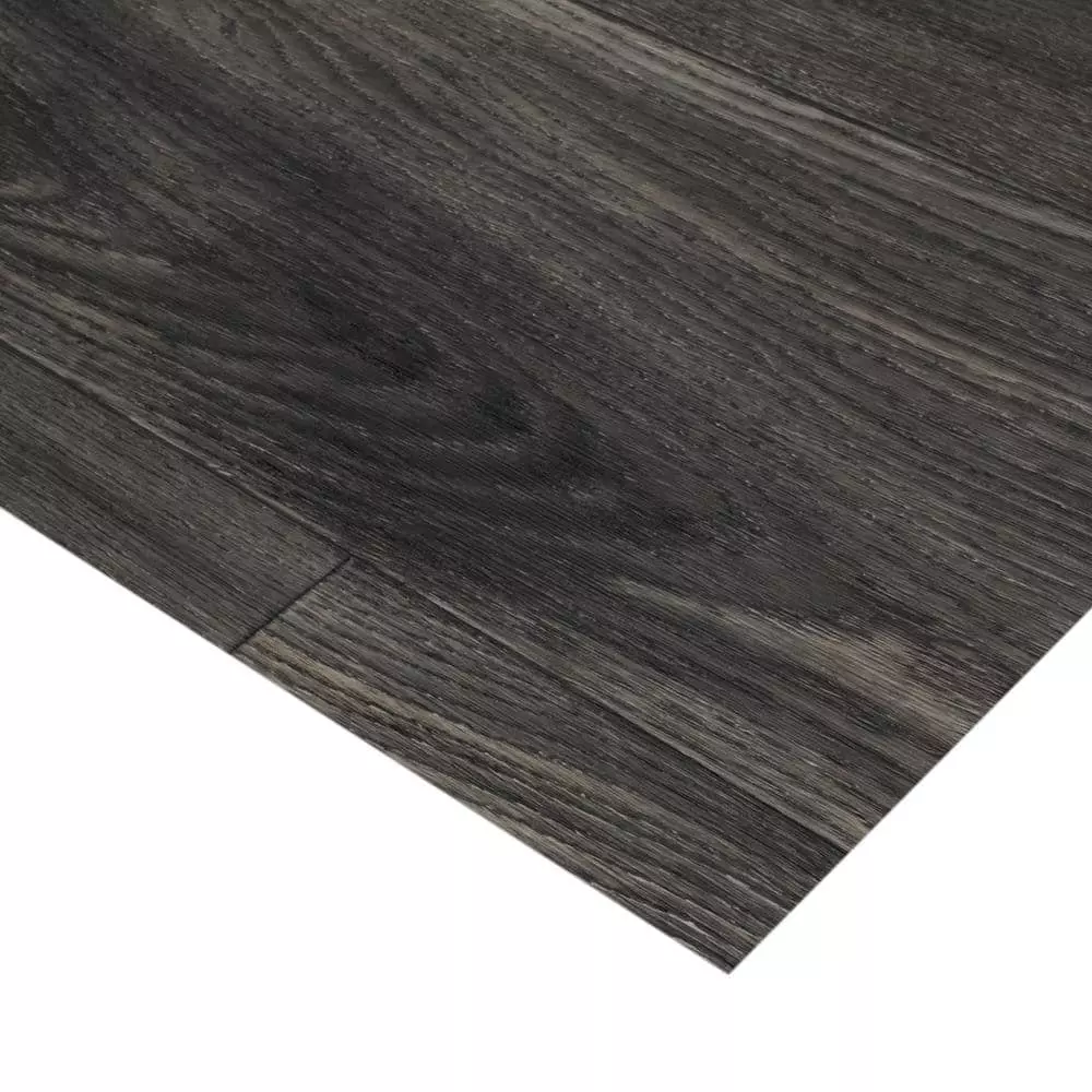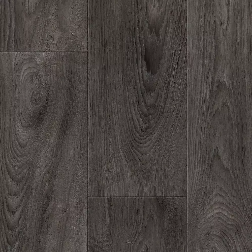 A cool, dark ,gray, weathered walnut wood pattern from TrafficMASTER. This flooring is easy to install, easy to clean and offers exceptional comfort with its thick, cushioned backing that also serves to reduce sound throughout your room. Backed by a limited 25-year residential warranty, the built-to-last design features a urethane wear layer that provides the toughest protection against common household accidents, ensuring long-lasting appearance and functionality.