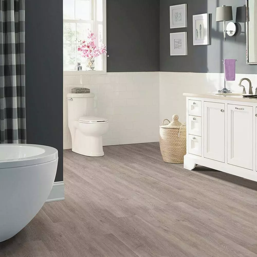 Bringing traditional elegance to your space, the TrafficMASTER 6 in. x 36 in. Taupe Oak offers an easy peel and stick installation. The durable 0.08 in. total thickness with strong 4 mil clear top wear-layer makes it particularly suitable for all residential areas. The classic, wood design brings an authentic, natural beauty to your floors.