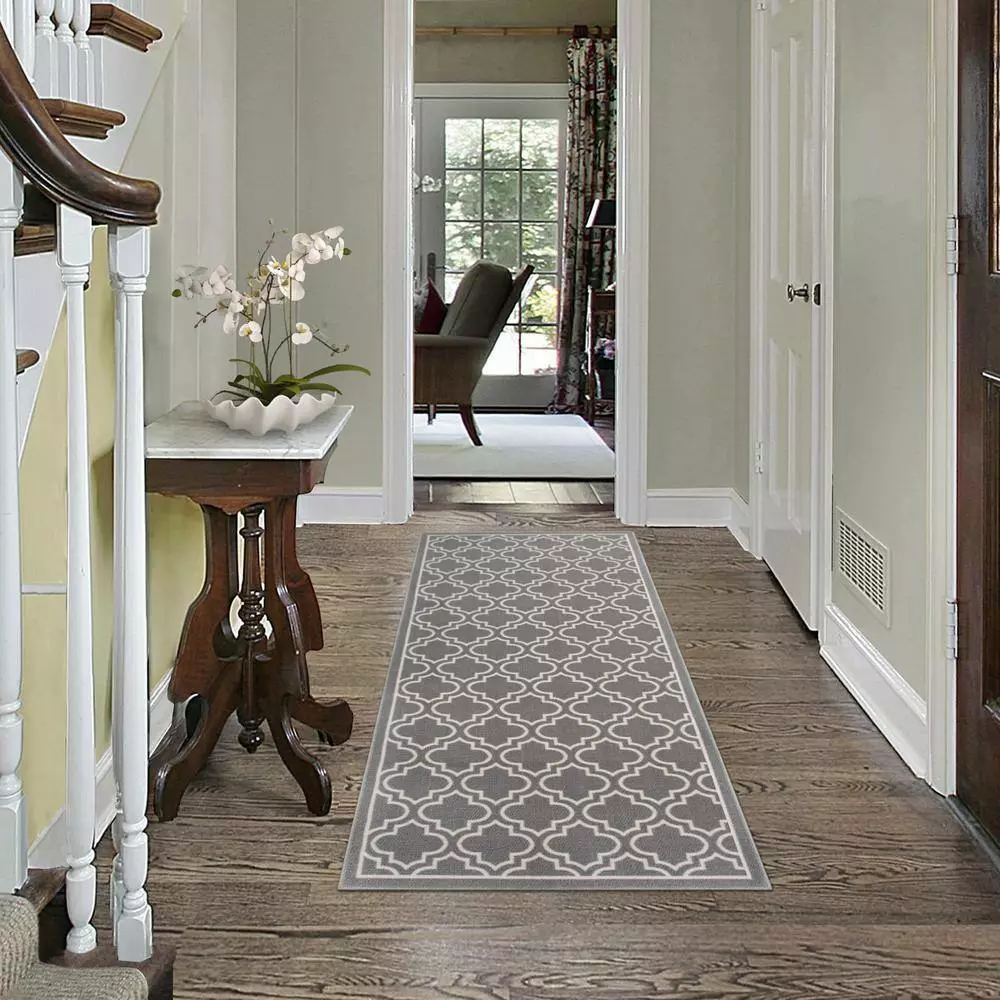 The Trellis Grey accent rug is durable and stain resistant. It features a versatile pattern to help match to many home interiors. Designed for indoor use, this accent rug can be spot cleaned for easy upkeep.